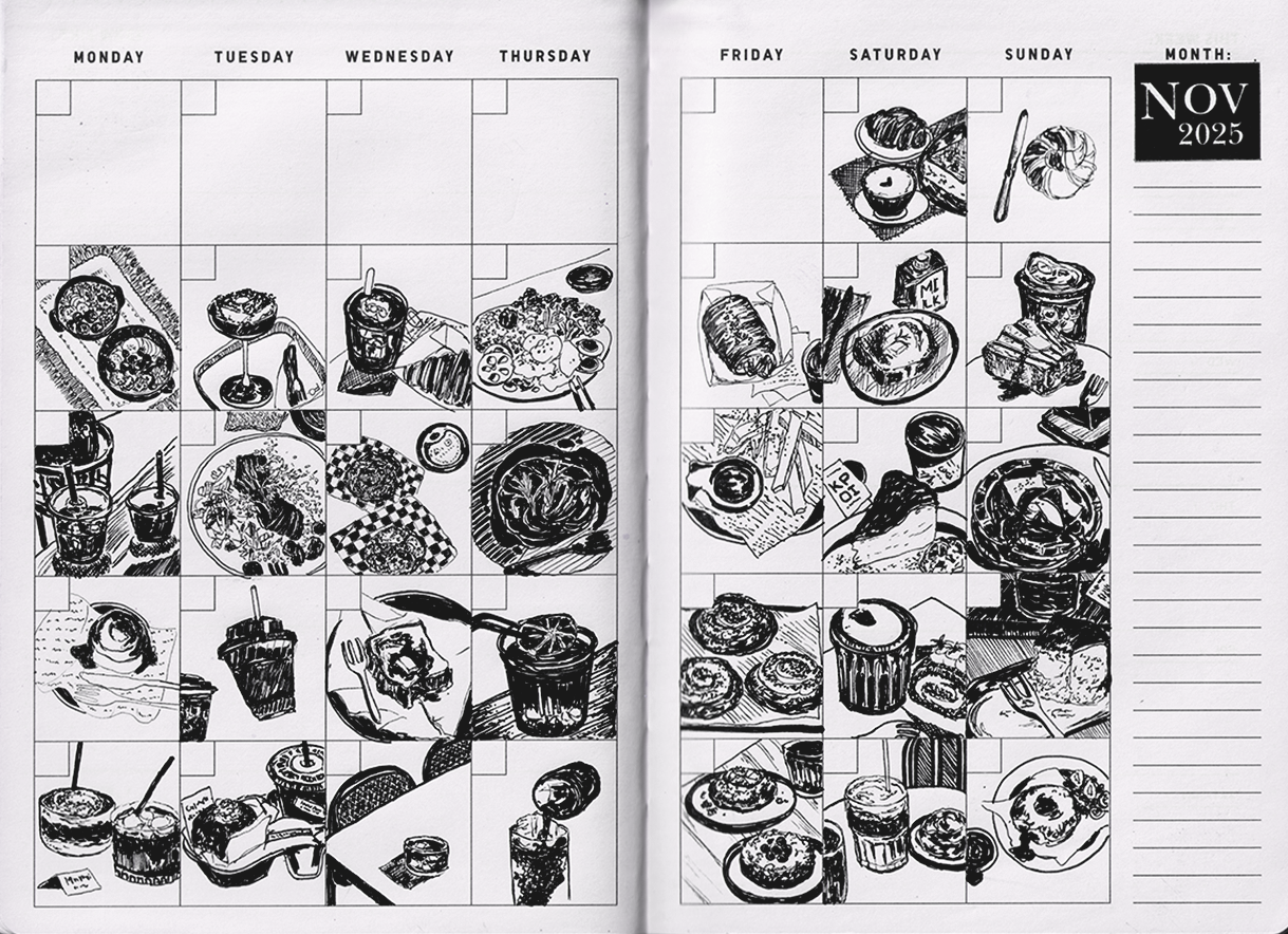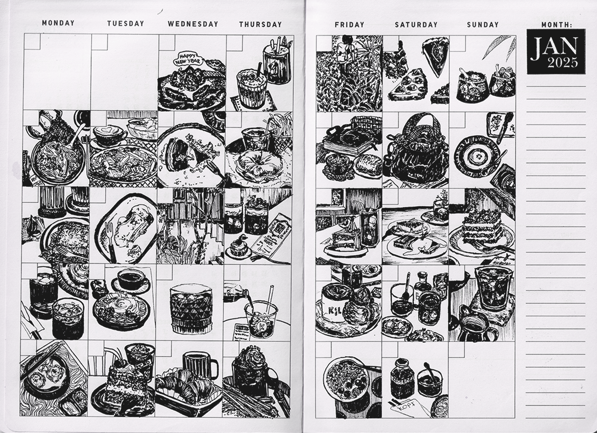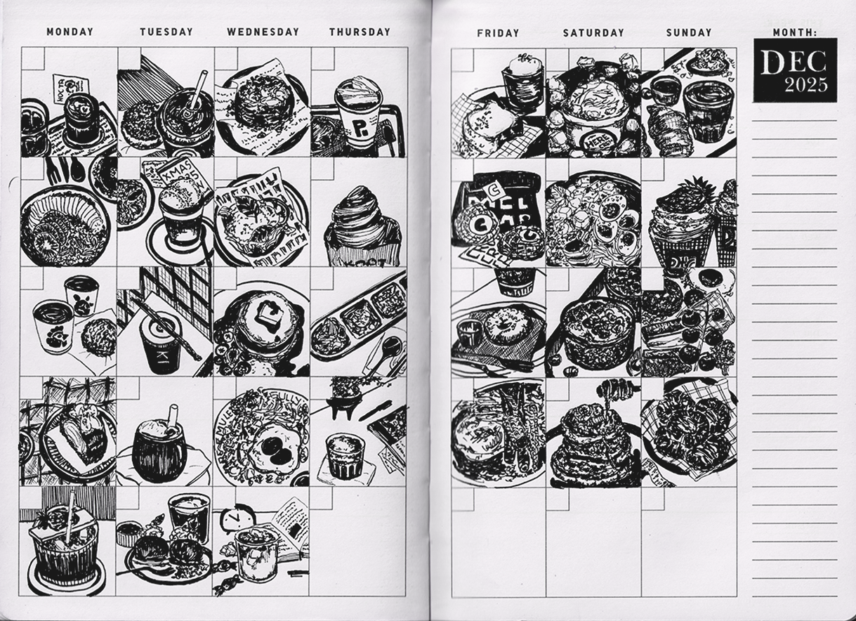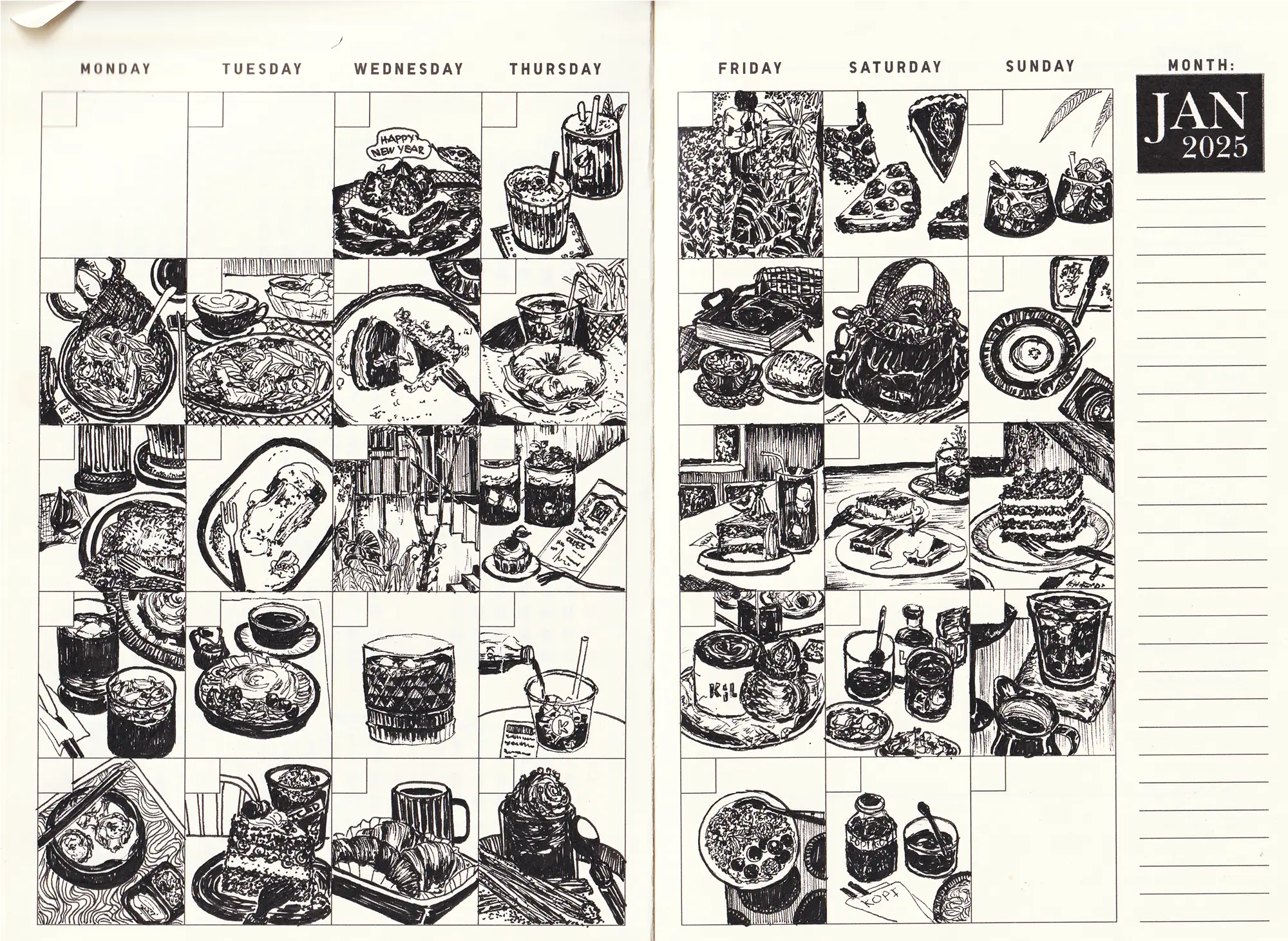 A habit that stayed with me from 2024. One tiny drawing a day. Sometimes a cup, sometimes food, sometimes whatever caught my eye. I didn’t always know what to draw, but I showed up anyway, even when the lines came out rushed or uneven.