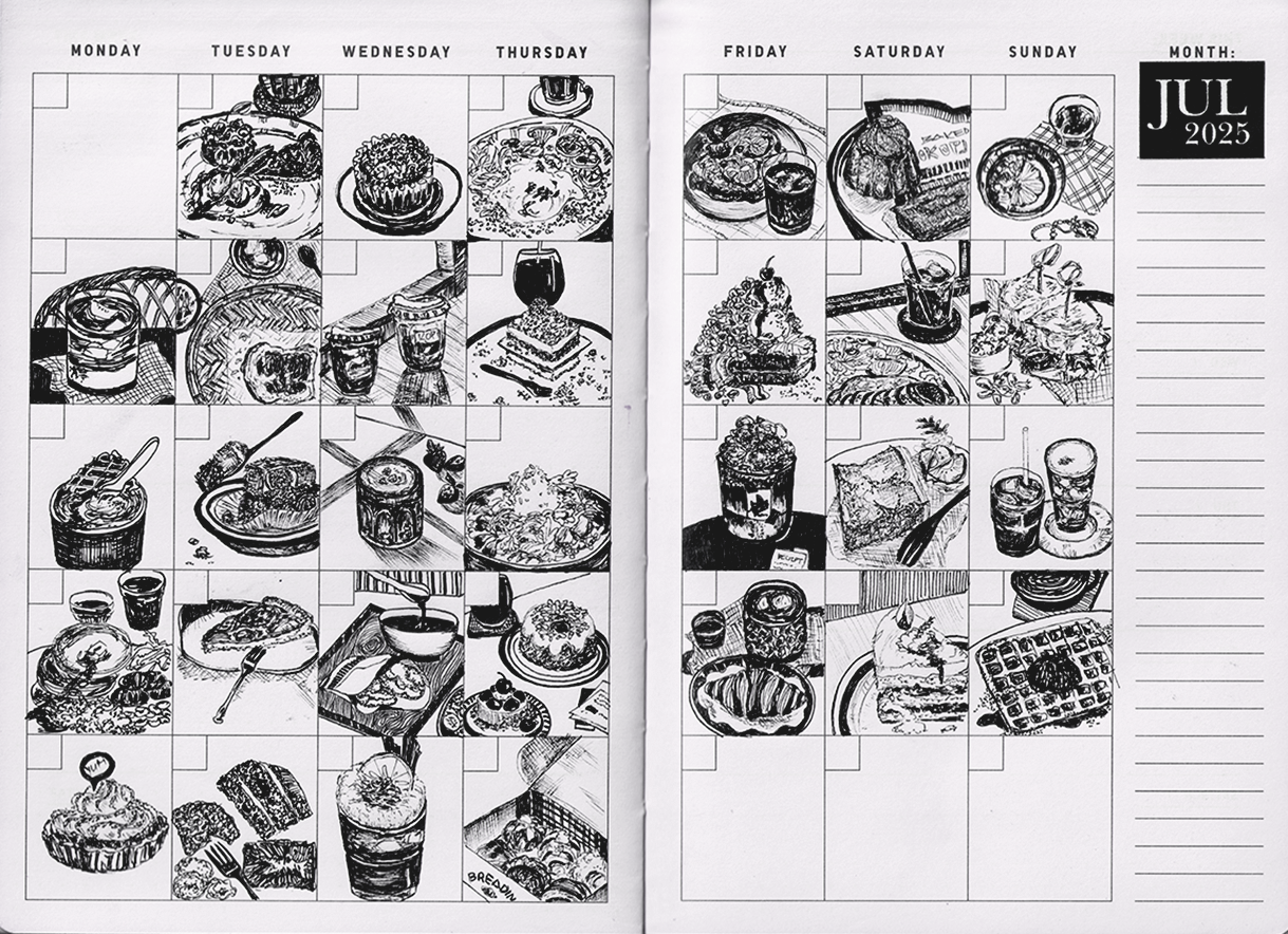 Looking back at a full month of drawings, it hits differently. I see the days I was tired, the days I tried harder, the ones I barely made a mark at all. But they’re all there. It quietly kept track. It reminds me to keep going. Nothing needs to be perfect. Just letting the hand do its work.